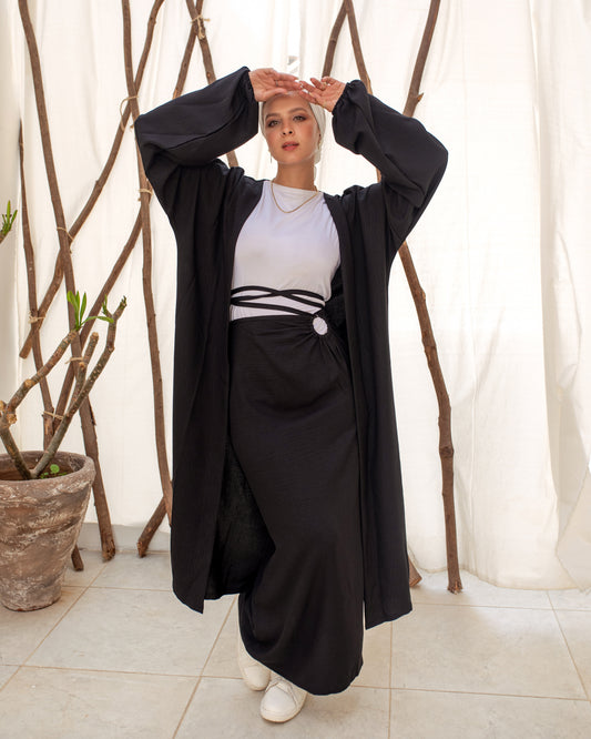 WRAPPED WAISTED CIRCLED SKIRT IN BLACK