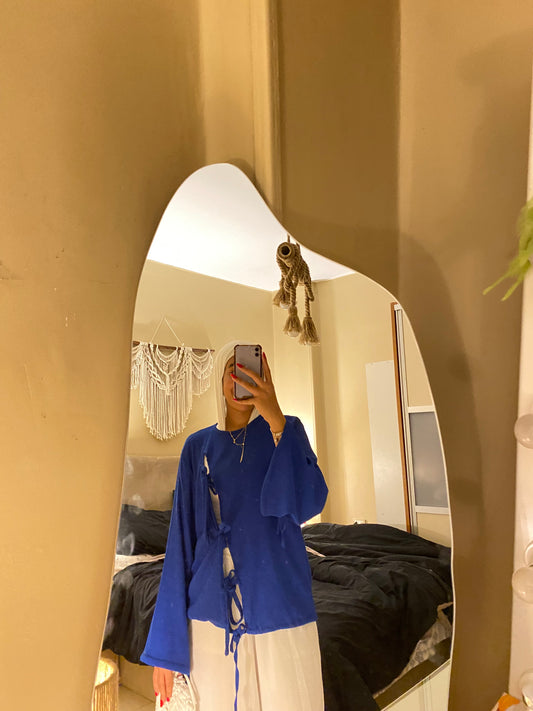 RIBBON TEXTURED BLOUSE IN ROYAL-BLUE